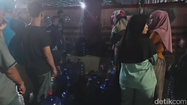 Pantauan detikSumbagsel di lokasi Jumat (20/6/2025) malam, belasan warga masih terlihat mengantre dengan galonnya demi memenuhi stok air bersih di rumah.