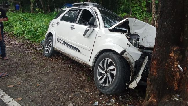 "Mobil tersebut oleng dalam kecepatan tinggi, kemudian menabrak pohon besar di kiri jalan. Bagian depan mobil rusak parah," ujar Kapolsek Sindangbarang AKP Dadang Rustansi.
