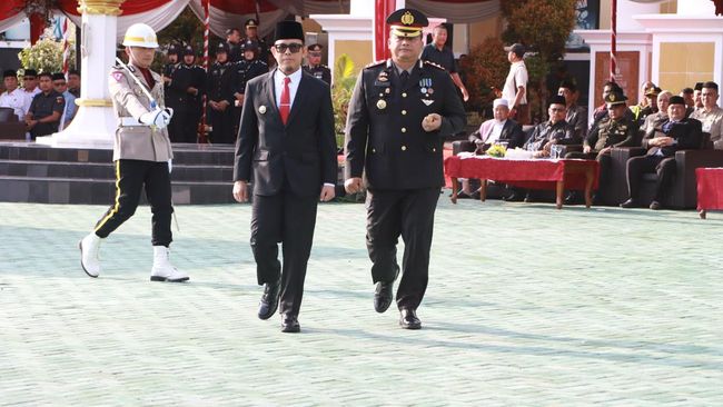 Bupati Ogan Komering Ulu (OKU) Teddy Meilwansyah memimpin upacara peringatan Hari Bhayangkara ke-79. Teddy membacakan amanat tertulis Kapolda Sumatera Selatan Irjen Pol Andi Rian Djajadi yang menyampaikan ucapan selamat kepada seluruh anggota Polri.