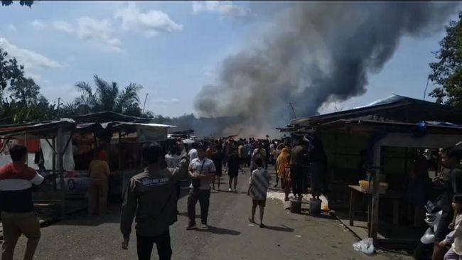 Sebanyak 36 kios pedagang di Pasar Pulau Mas, Kecamatan Tebing Tinggi, Kabupaten Empat Lawang, Sumatera Selatan, ludes terbakar, Selasa (1/7/2025). Diduga kebakaran itu berasal dari korsleting listrik.