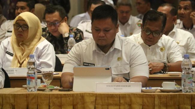 Sekretaris Daerah Banyuasin Erwin Ibrahim menghadiri High Level Meeting (HLM) tim pengendalian inflasi daerah (TPID) dan tim percepatan dan perluasan digitalisasi daerah (TP2DD) se-Sumatera Selatan, Selasa (8/7/2025).