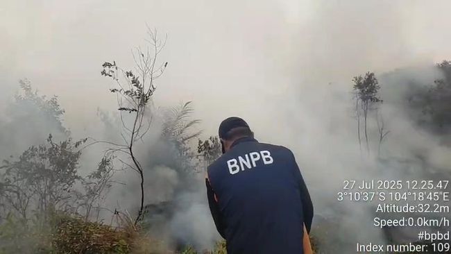 Kebakaran hutan dan lahan (karhutla) di Muara Enim, Sumatera Selatan, belum padam. Hingga Minggu (27/7/2025) sore atau hari kedua, luas lahan yang terbakar bertambah menjadi 6 hektare dari sebelumnya hanya 4 hektare.