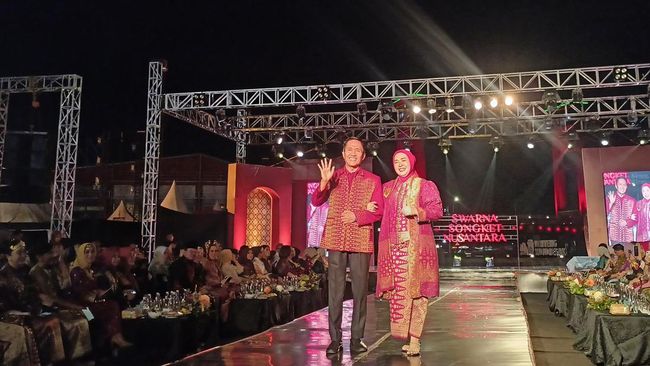 Keduanya melenggang diiringi cahaya lampu dan sorotan kamera di deretan tamu kehormatan dalam gelaran tersebut. Tak hanya Ratu Dewa dan istri, para kepala daerah se-Sumatera Selatan yang lain juga melakukan hal yang sama dengan songketnya masing-masing.