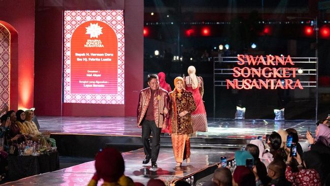 Ketua Umum Dekranas Selvi Ananda Gibran juga hadir menyaksikan kemegahan pagelaran dan memberikan dukungan terhadap promosi songket sebagai warisan budaya Indonesia.