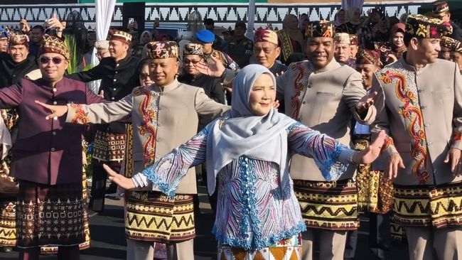 Pemerintah Kota (Pemkot) Bandar Lampung menggelar pawai budaya bertajuk Tari Ngigel di kawasan Tugu Adipura, Minggu (3/8/2025). Kegiatan ini diikuti puluhan peserta dari organisasi perangkat daerah (OPD), BUMD, hingga perwakilan seluruh kecamatan di Kota Tapis Berseri.