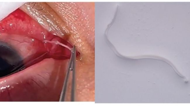 Seorang wanita di Beijing, China, mengeluhkan adanya benda asing yang tersangkut di matanya. Hal tak terduga terungkap, dokter menemukan adanya empat ekor cacing putih bersarang di matanya.