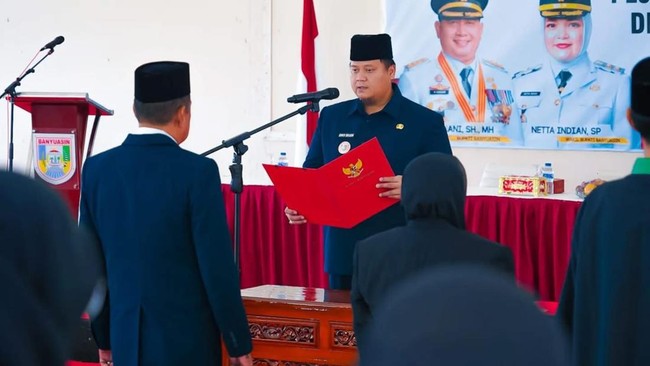 Sekretaris Daerah Erwin Ibrahim melantik 33 pegawai negeri sipil (PNS) ke dalam jabatan fungsional tertentu di lingkungan Banyuasin. Pelantikan dilakukan di Pendopo Rumah Dinas Bupati Banyuasin, Rabu (13/8).