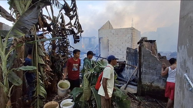 Warga di Kecamatan Gandus, Palembang, Sumatera Selatan (Sumsel) panik karena rumah mereka di kawasan padat penduduk ludes terbakar. Warga masih sibuk menyelamatkan barang-barang berharga.