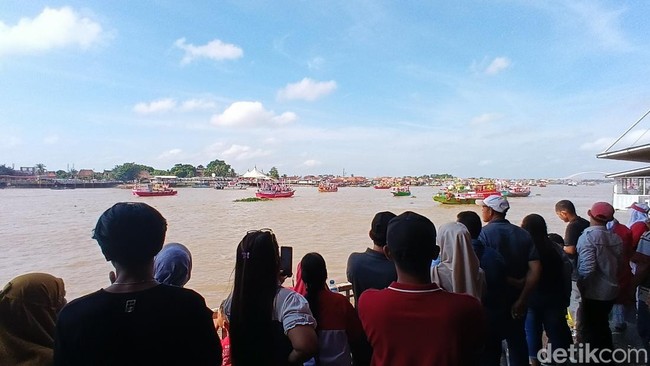 Pantauan detikSumbagsel pada Minggu (17/8/2025) pagi, terlihat puluhan perahu hias dari berbagai kecamatan dan instansi pemerintahan berlomba di atas ombak Sungai Musi.