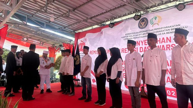 Ribuan warga binaan di Provinsi Bengkulu mendapat remisi pada peringatan HUT RI ke-80. Dari ribuan itu, 100 orang langsung bebas.