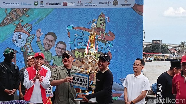 Pantauan detikSumbagsel, sempat terjadi kejar-kejaran sengit antara perahu bidar Dishub Palembang dan Pemkab Ogan Ilir. Namun, perahu putih merah dengan list hijau tersebut berhasil unggul dengan perbedaan waktu yang sangat tipis.