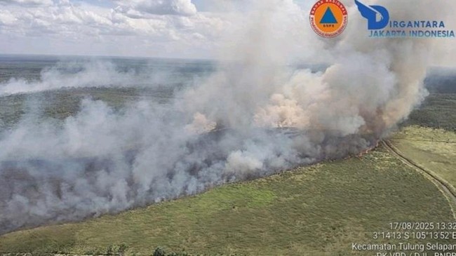 Sebanyak tiga daerah di Sumatera Selatan (Sumsel) terjadi kebakaran hutan dan lahan (karhutla) pada Minggu (17/8/2025). Luas lahan yang terbakar mencapai belasan hektare, upaya pemadaman dilakukan oleh satgas darat dan udara.