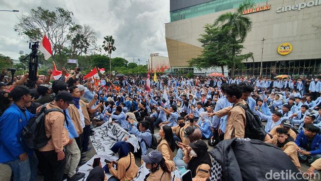 Ratusan massa aksi mulai berdatangan ke DPRD Sumatera Selatan (Sumsel), di Jalan Pom IX Kota Palembang. Massa ini menuntut soal kenaikan gaji, tunjangan DPR-ojek online (ojol) tewas.