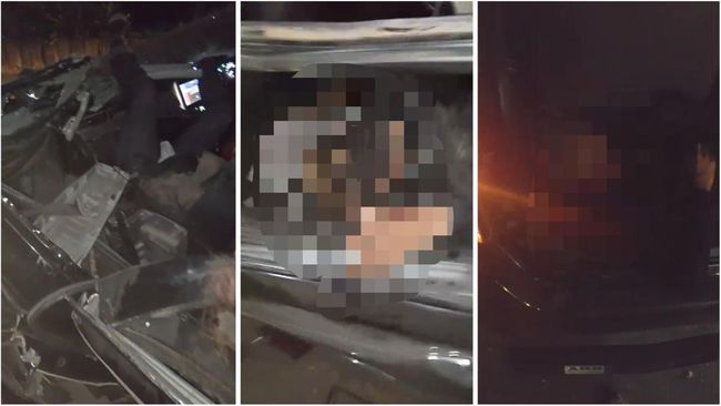 Mobil oleng ke kiri lalu menabrak kios bensin milik warga bernama Rusmin. Setelah itu, Innova terus melaju dan menabrak bagian belakang truk Fuso oranye nopol BE-9447-BH yang tengah melintas.