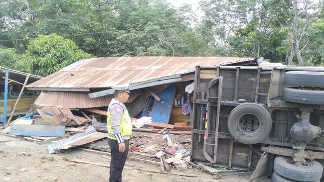Pandri menjelaskan akibat truk hilang kendali dan melebar ke sebelah kiri ke arah Jambi, membuat truk terbalik sehingga menimpa sebuah rumah warga milik Ibrahim (51), warga Kabupaten Muba.