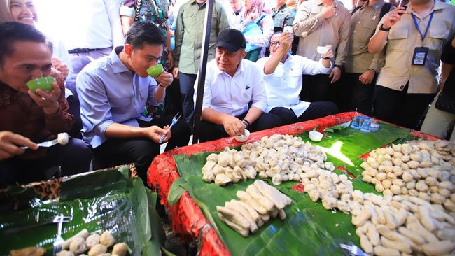 Layaknya masyarakat Palembang, Gibran juga 'ngirup cuko' di tempat itu bersama Herman Deru, Wali Kota Palembang Ratu Dewa, dan Kepala KSP Muhammad Qodari. Dia juga duduk di kursi plastik tepat di depan hamparan ratusan pempek.