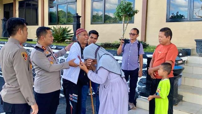 Momen mengharukan pertemuan antara anak dan ayah yang telah terpisah 20 tahun itu terjadi halaman Makopolres Bangka Selatan. Dari foto yang diterima detikSumbagsel, Hayati tampak sungkem kepada ayahnya sembari menangis.