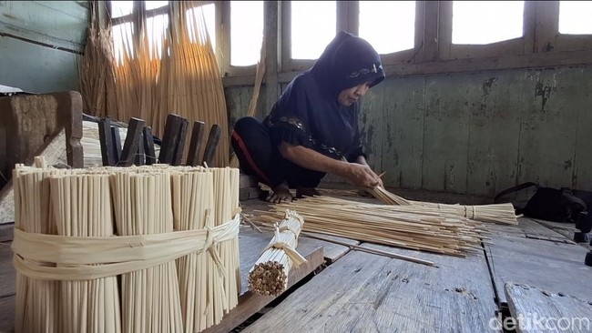 Selain kerajinan tangan, salah satu yang paling terkenal di kampung tersebut yakni sebagai sentral pembuat rokok nipah. Salah satu pembuat rokok nipah, Siti Aminah (68) dengan usia yang tak lagi muda, ia masih terus melakukan pekerjaan yang sudah turun-temurun tersebut.