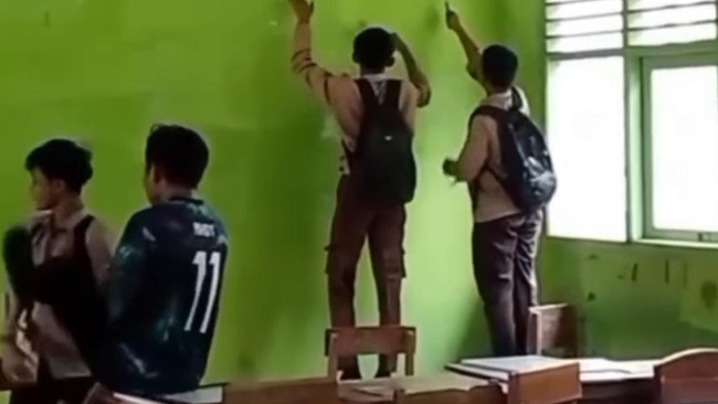 Dalam video yang beredar tampak tak ada kejanggalan dalam ruang kelas. Tiba-tiba seorang siswa terlihat mendatangi guru yang tengah bersandar di meja, siswa tersebut berusaha merapikan baju seragam pramuka yang dikenakannya.