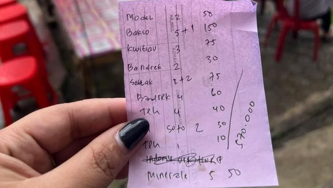 Jumlah jajanan yang yang harus dibayar dan tertera di nota tersebut sebesar Rp 570.000 ribu.