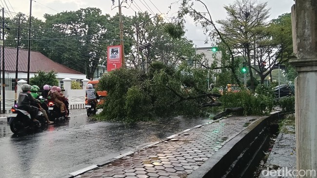 "Saat itu saya berada di dalam ruang sidang sedang memantau sidang karena lagi magang. Lalu waktu hujan deras dan angin kencang tiba-tiba pohon itu roboh dan hampir mengenai motor saya," katanya, Selasa.