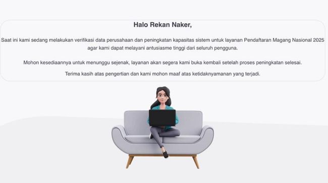 Website MagangHub Kemnaker tidak bisa diakses pada Selasa, 7 Oktober 2025. Oleh karena itu, peserta magang belum dapat mendaftar Program Pemagangan Bagi Lulusan Perguruan Tinggi.