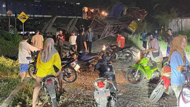 Dari foto yang dilihat detikSumbagsel, tampak truk berwarna putih yang mengangkut crine sudah dalam keadaan rusak pada bagian belakang, sementara crane yang diangkut sudah berada di pinggir rel kereta.