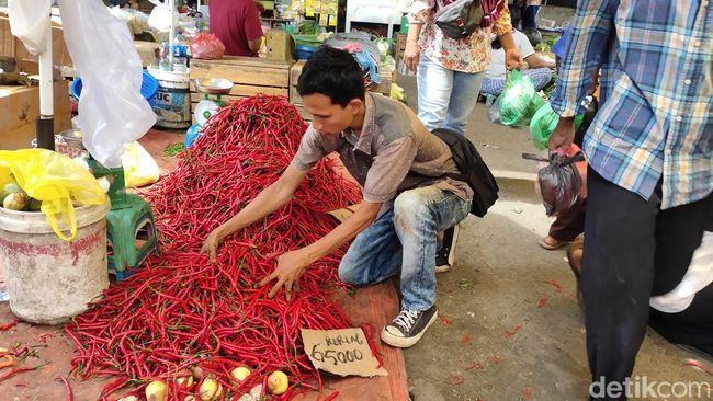 "Hari ini cabai merah satu kilonya Rp 70 ribu, kalau minggu lalu masih Rp 65 ribu. Cabai rawit Rp 60 ribu per kilo, cabai burung Rp 90 ribu per kilogram. Untuk bawang merah satu kilonya sekarang sudah Rp 30 ribu sebelumnya Rp 26 ribu-28 ribu per kilonya. Bawang putih Rp 32 ribu per kilonya," ujar pedagang di Pasar 26 Ilir bernama Adi, Rabu (13/12/2023).