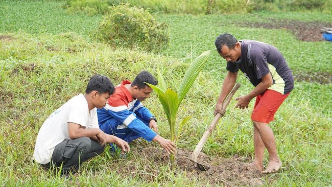 Penanaman pohon kelapa ini dilakukan di kawasan Ring 1 perusahaan, RW 02 Kelurahan Talang Jambe ini bertujuan mengurangi emisi gas rumah kaca (GRK) serta polusi udara.