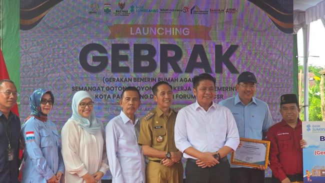 Bank Sumsel Babel menyalurkan bantuan melalui program Tanggung Jawab Sosial dan Lingkungan (TJSL) dalam kegiatan Launching GEBRAK (Gerakan Benerin Rumah Agar Layak) di Kota Palembang.