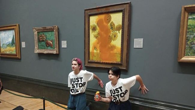 Mereka yang melemparkan sup tomat ke lukisan Vincent van Gogh di Galeri Nasional Inggris dihukum penjara. Mereka merupakan aktivis iklim yakni Phoebe Plummer (23) dan Anna Holland (22).
