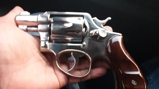 Dari foto yang diterima, senjata yang diamankan jenis revolver S&W 2 inchi. Senjata itu bertangkai warna cokelat dan diamankan dari lokasi.