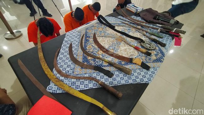 Dalam penangkapan ketiga anggota geng motor ini, sedikitnya 15 senjata tajam jenis parang hingga celurit diamankan petugas.