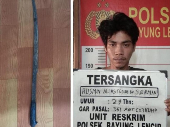 Wanita di Musi Banyuasin, Sumatera Selatan, Evi Karinah (30) menderita luka robek di bahu dan kepala usai dibacok parang adik kandungnya, Rusmin alias Teguh (29). Teguh emosi kerap dimarahi dan diejek pengangguran oleh korban.