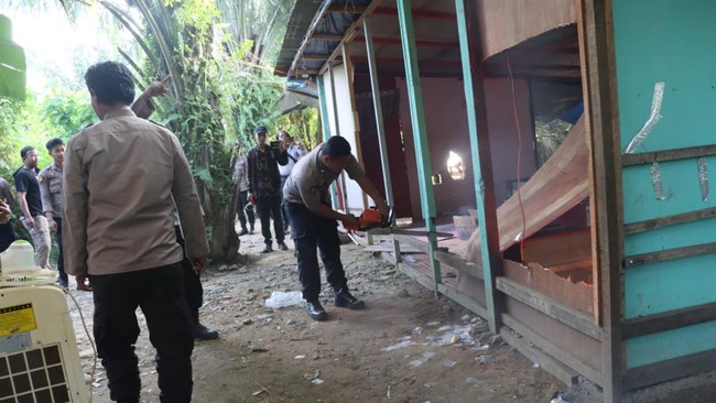 "Di lokasi itu telah dilakukan pemasangan garis police line terhadap satu unit rumah permanen (basecamp) yang menjadi tempat mengkonsumsi narkotika (sabu)," jelasnya.