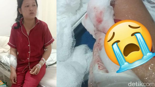 Dari foto beredar dilihat detikSumbagsel, Kamis (31/8/202), Yunita nampak mengenakan baju dan celana merah tengah duduk di tempat tidur rumah sakit dengam posisi tangan kiri diinfus dan tangan kanan dibalut perban.