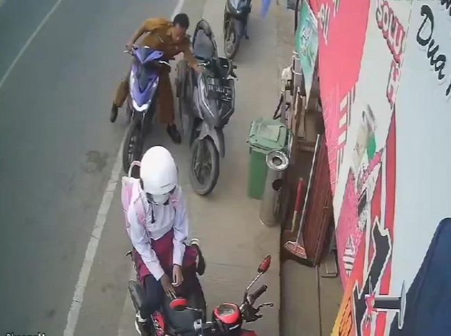 Dari video yang dilihat detikSumbagsel, Rabu (20/9/2023), terlihat seorang siswi SMA memarkirkan sepeda motornya di pinggir jalan dan masuk ke dalam sebuah warung. Tak lama kemudian, datanglah pria berseragam pegawai pemerintah itu dengan mengendarai sepeda motor. Ia terlihat mendekati motor korban.