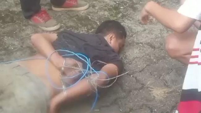 Dalam video yang dilihat detikSumbagsel, Rabu (27/9/2023), tampak pria tersebut meringkuk di tanah dengan tangan terikat ke belakang tubuhnya. Kejadian tersebut terjadi di Kawasan Gor Kota Baru, Kota Jambi.