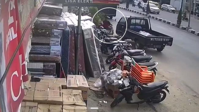 Aksi pria mencuri sepeda motor di halaman parkir sebuah toko elektronik di Simpang IV Sipin, Kota Jambi, terekam CCTV dan beredar di media sosial. Pelaku dapat melancarkan aksinya dengan cepat karena korban lupa mencabut kunci motor.
