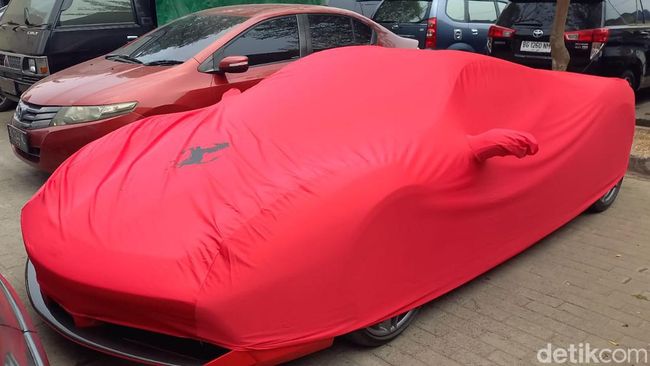 Pantauan detikSumbagsel pada Selasa (17/10/2023) mobil Ferrari B 41 NI berwarna merah tersebut saat ini sudah di tutupi agar tidak terkena terik sinar matahari.