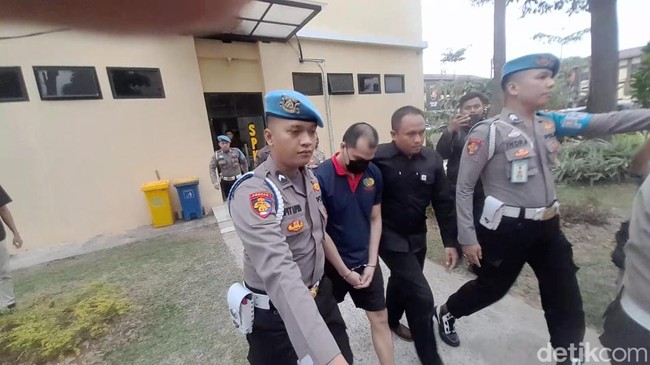 Tampak kedua tangan alumni Akpol 2012 itu diborgol ketika akan memasuki mobil tahanan. Andri mengenakan kaus berwarna biru gelap, celana pendek berwarna hitam, serta masker hitam.
