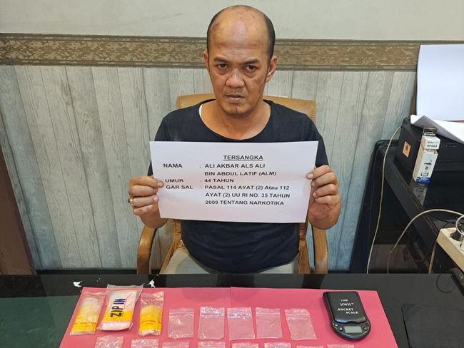 Tim Satresnarkoba Polresta Jambi menangkap Ali Akbar (42), bandar sabu. Ali diamankan di kos-kosannya bersama barang bukti ratusan gram sabu.