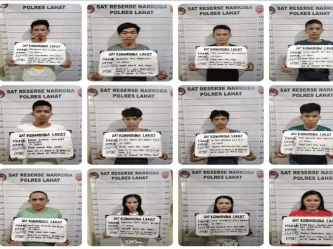 Berikut ini identitas 12 warga Lahat pemuja sabu dan ganja yang sudah jadi tersangka tersebut, di antaranya: Harmansi (42) pemilik kolam pemancingan, warga Desa Suka Negara, positif pakai sabu dan ganja; M Edo Pangestu (21), warga Kelurahan Pasar Bawah, positif sabu. Ada juga, Yogi Arianto (25), Kelurahan Pasar Lama, positif sabu; Naza Sumardiko (32), warga Pasar Lama, positif sabu dan Azizul Hakim (25), warga Pasar Lama, yang juga positif sabu.