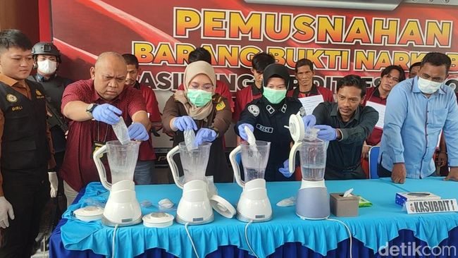 Pemusnahan itu dilakukan di halaman Mapolda Sumsel, Kamis (23/11/2023). "Pemusnahan barang bukti ini sudah disisihkan, sebagian untuk dibawa ke persidangan nantinya," kata Kasubdid 1 Ditresnarkoba Polda Sumsel Kompol Tri Wahyudi kepada detikSumbagsel, Kamis (23/11/2023).