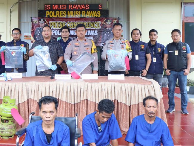 Adapun ketiga pelaku yang ditangkap yakni Arpan Sopian (50), Ardy Arianto (23), Mulyadi (53), satu pelaku bernama Fadli masih dalam pencarian orang (DPO). Ketiga pelaku ditangkap saat sedang bersembunyi di kediaman pelaku Sopian Desa Tanah Periuk, Kecamatan Muara Beliti, Mura, Jumat (24/11/2023) sekitar pukul 19.40 WIB.
