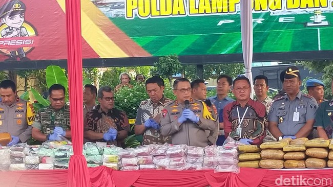 Selama kurun waktu satu tahun, Polda Lampung berhasil mengungkap sejumlah kasus narkoba jaringan internasional. Total 421,9 kilogram serta 359,9 kilogram ganja berhasil disita.