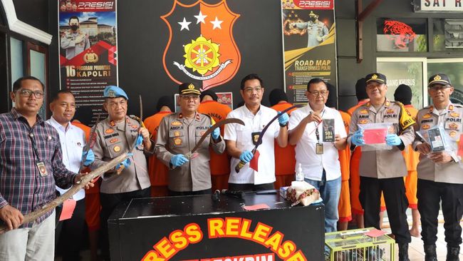 Adapun barang bukti yang diamankan yakni 3 buah celurit panjang terbuat dari besi, 1 buah pedang samurai bergagang kay, dan 3 buah Hp.