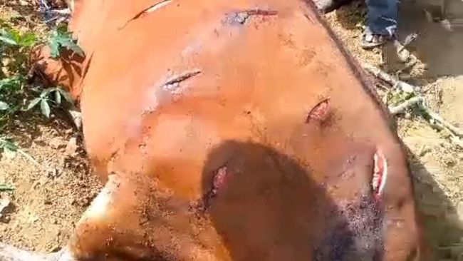 Beredar video sejumlah sapi mengalami luka bacokan pada bagian tubuhnya. Bahkan dari video yang beredar, tampak salah satu sapi tengah sekarat dengan kondisi usus terburai.