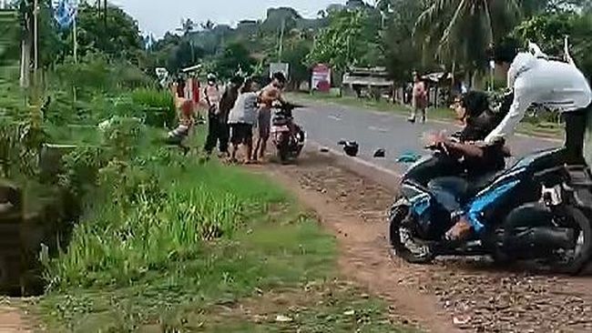 Dalam video yang diterima detikSumbagsel pada Jumat (5/1/2024), tampak pelaku berusaha kembali menaiki motor curian setelah terlibat kecelakaan dengan pengguna motor lainnya. Kemudian, dari arah belakang, tampak seseorang yang dikatakan sebagai pemilik motor langsung menendang pelaku hingga terjatuh kembali.