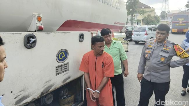 Polda Sumsel menangkap seorang oknum sopir tangki minyak yang kedapatan 'kencing' muatan BBM di Kabupaten Ogan Ilir, Sumatera Selatan (Sumsel). Tersangka berinisial BS (34) diamankan bersama truk Hino bernopol BG 8918 DD warna merah-putih dengan kapasitas 24 ton.